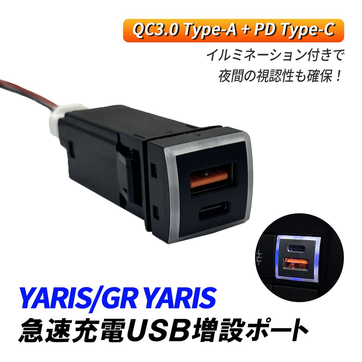 > GRヤリス ヤリス 10系 15系 USB 増設 車 USBポート 埋め込み トヨタ Dタイプ QC3.0 PD3.0 急速充電 USB 電源 スイッチホール パネル 内装