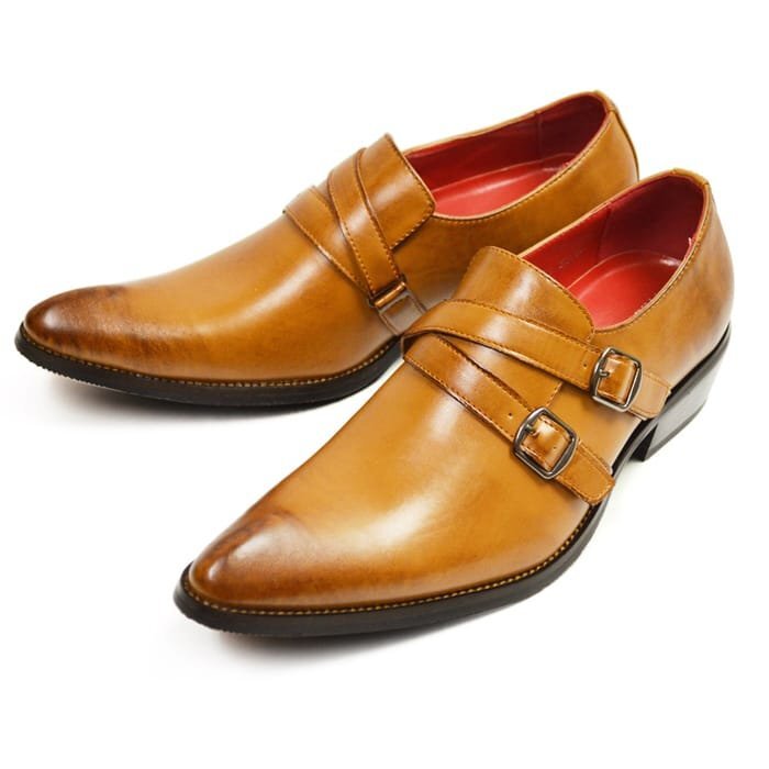 - 新品■26cm ビジネスシューズ 紳士靴 4.5cmヒール メンズ 革靴 モンクストラップ ベルト 脚長 フォーマル 冠婚葬祭 イタリアンデザイン