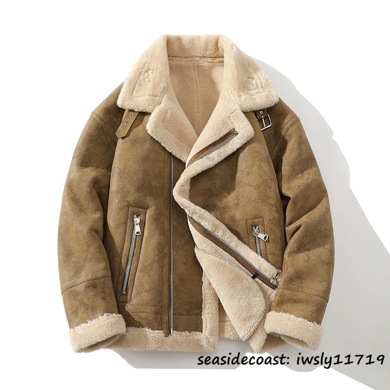 > 定価12万超■ファーコート ムートンコート 超防寒 厚手 ライダース フライトジャケット 秋冬新品 上品 ジャンバー ブルゾン ブラウン 5XL