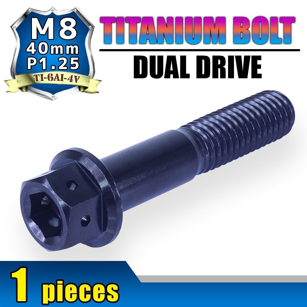 - メール便OK!M8×40 P1.25 チタンボルト 1本 8mm 40mm ピッチ1.25 ブラック フランジ付 六角ボルト デュアルドライブ ハンドル周り