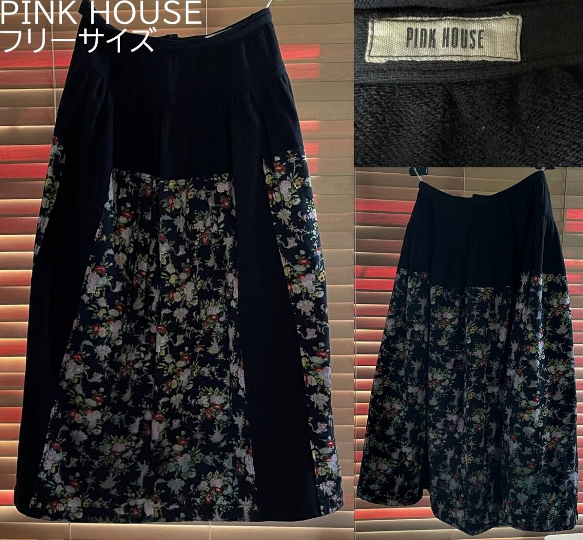 > 【激安1点のみ 国内正規品】PINK HOUSE ピンクハウス コットン100% 厚手 スウェット素材 花柄 プリント パッチワーク ロング スカート
