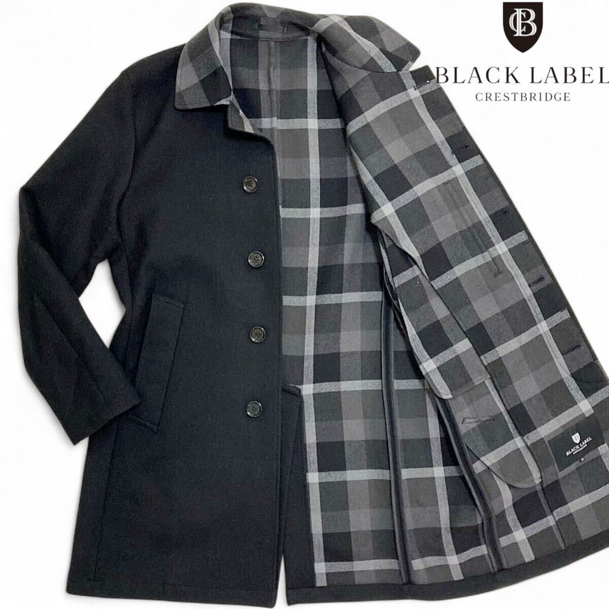 - 未使用級●L相当 ブラックレーベルクレストブリッジ メンズ ステンカラーコート CBチェック 比翼 裏地総柄 BLACK LABEL CRESTBRIDGE 黒