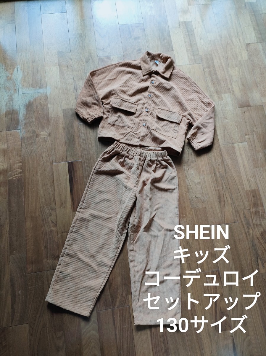 > SHEIN キッズ コーデュロイ セットアップ ワークシャツ キャメル 130
