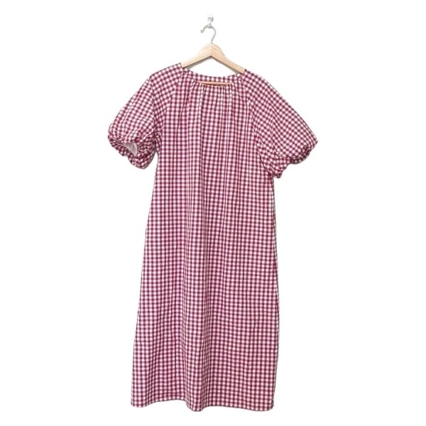 > ダーマコレクション DAMAcollection サイズLL - ピンク×白 レディース クルーネック/半袖/ロング/チェック柄/スパンコール 美品