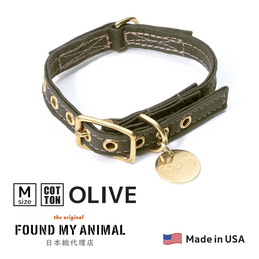 > FOUND MY ANIMAL キャット ドッグ カラー 首輪 OLIVE Mサイズ 犬 ネコ ペット ベルト クラシカル アメリカ製 Cat & Dog Collar