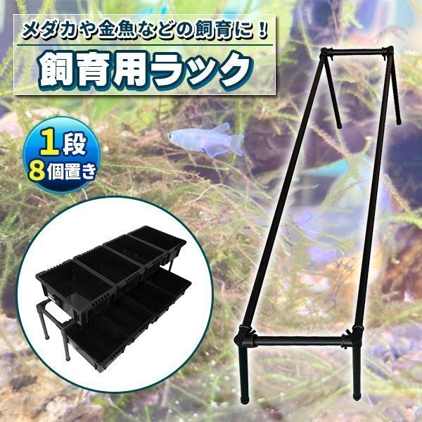 - メダカ飼育黒ラック 1段8個置き めだか飼育棚 めだか飼育棚 容器棚 めだか容器産卵撮影 ビオトープ ゾウリムシ PSB ミジンコ 培養 針子