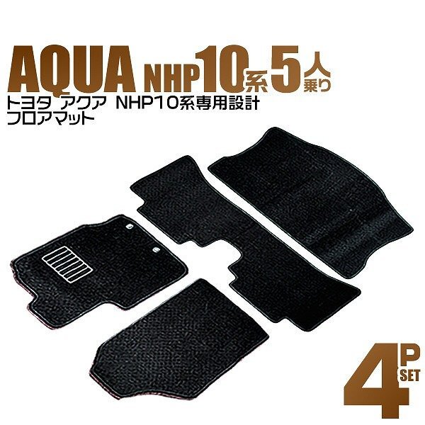 - TOYOTA トヨタ フロアマット 4点セット アクア 5人乗り AQUA NHP10系 ラゲッジ対応 カーマット プレミアム トランクマット 難燃性 黒