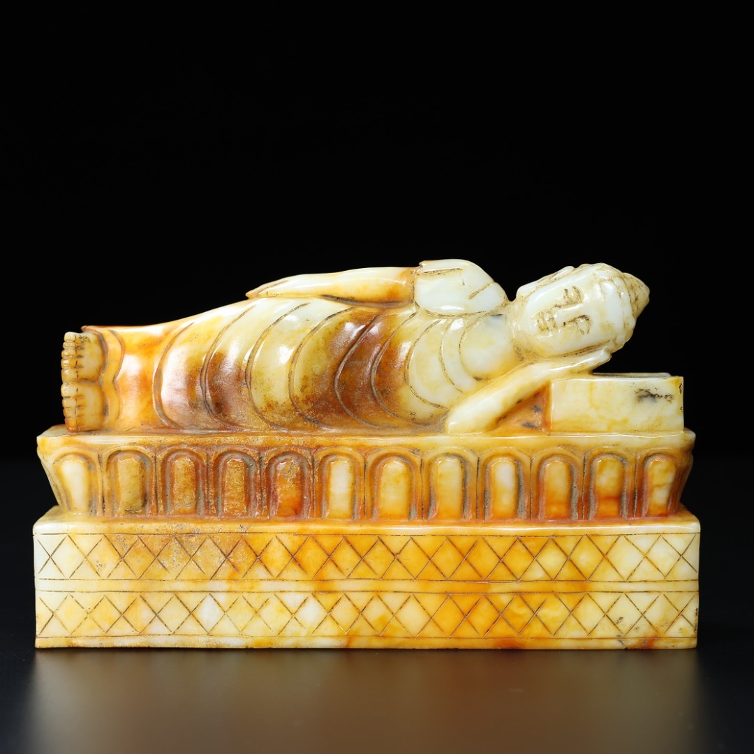 - 旧 清代 和田玉 睡仏 置物 文房具 古賞物 中国古美術 唐物 K711