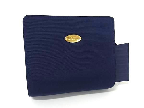 > ■美品■ ChristianDior ディオール キャンバス ミラー付き マルチポーチ マルチケース 小物入れ レディース ネイビー系 DI8508