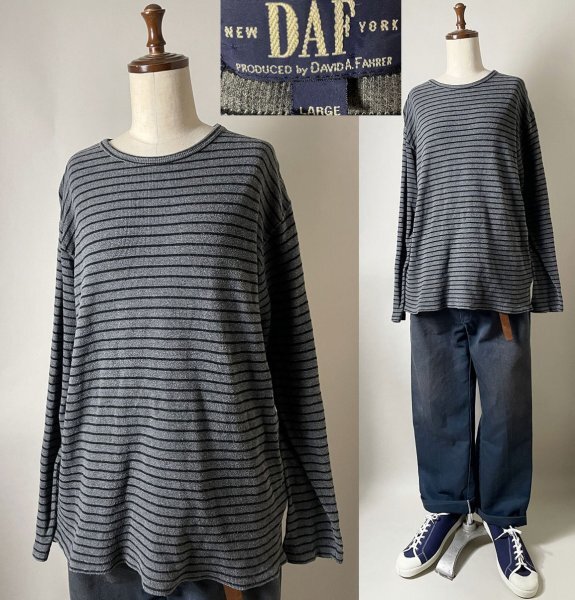 > ★【名作 マイナーブランド 暖かいインナー】ビンテージ コリア製 DAF NEW YORK クルーネック ボーダー サーマル ロンT Tシャツ L 長袖