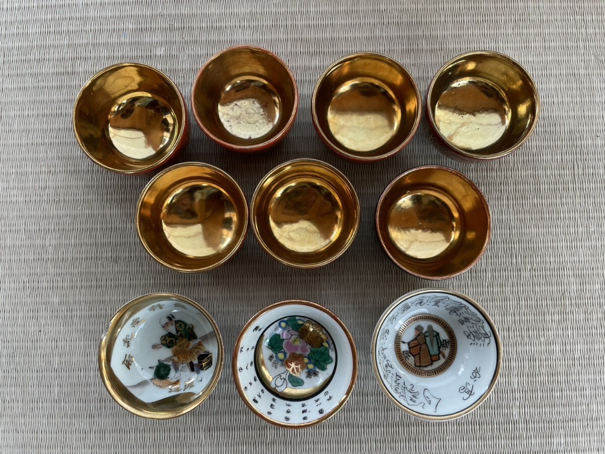 - アンティーク 九谷焼 お猪口 金盃 ぐい呑 赤絵 金彩 酒器 骨董品 色絵 現状品 ◎