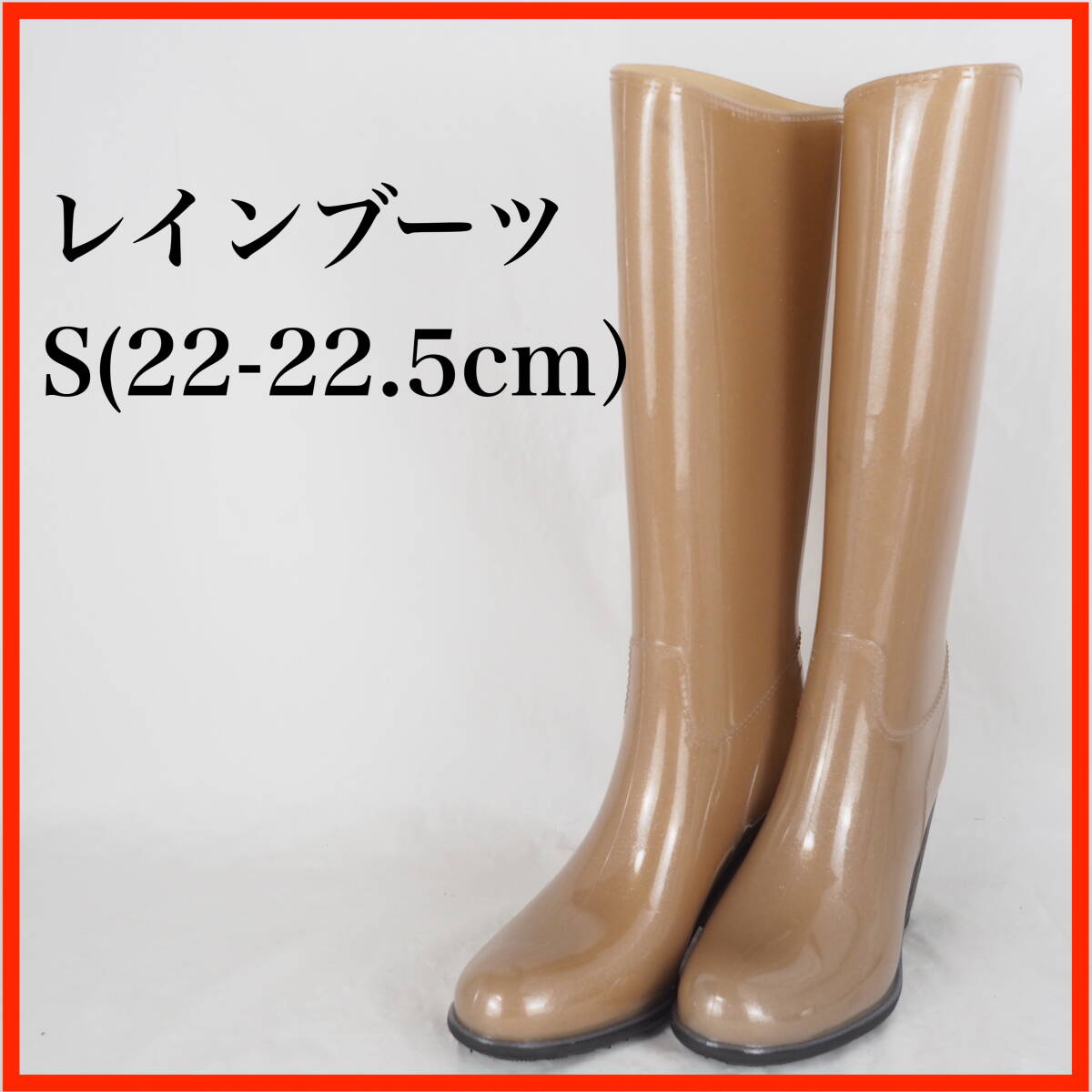 - GB0946*レディースロングレインブーツ*S(22-22.5cm)*ベージュラメ