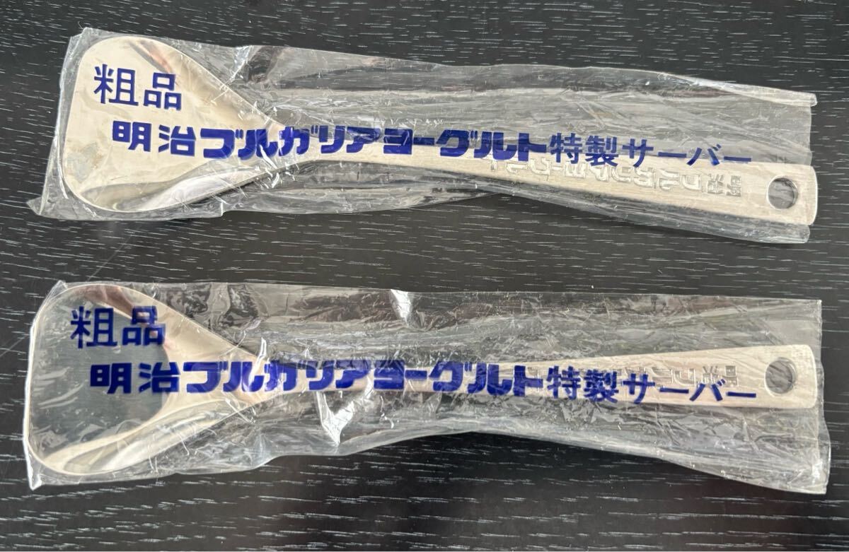 - 取り出しやすい ヨーグルト 専用スプーン 2点セット 未使用 ロゴ入り ヨーグルトを取りだしやすい形状の専用 スプーン ステンレス
