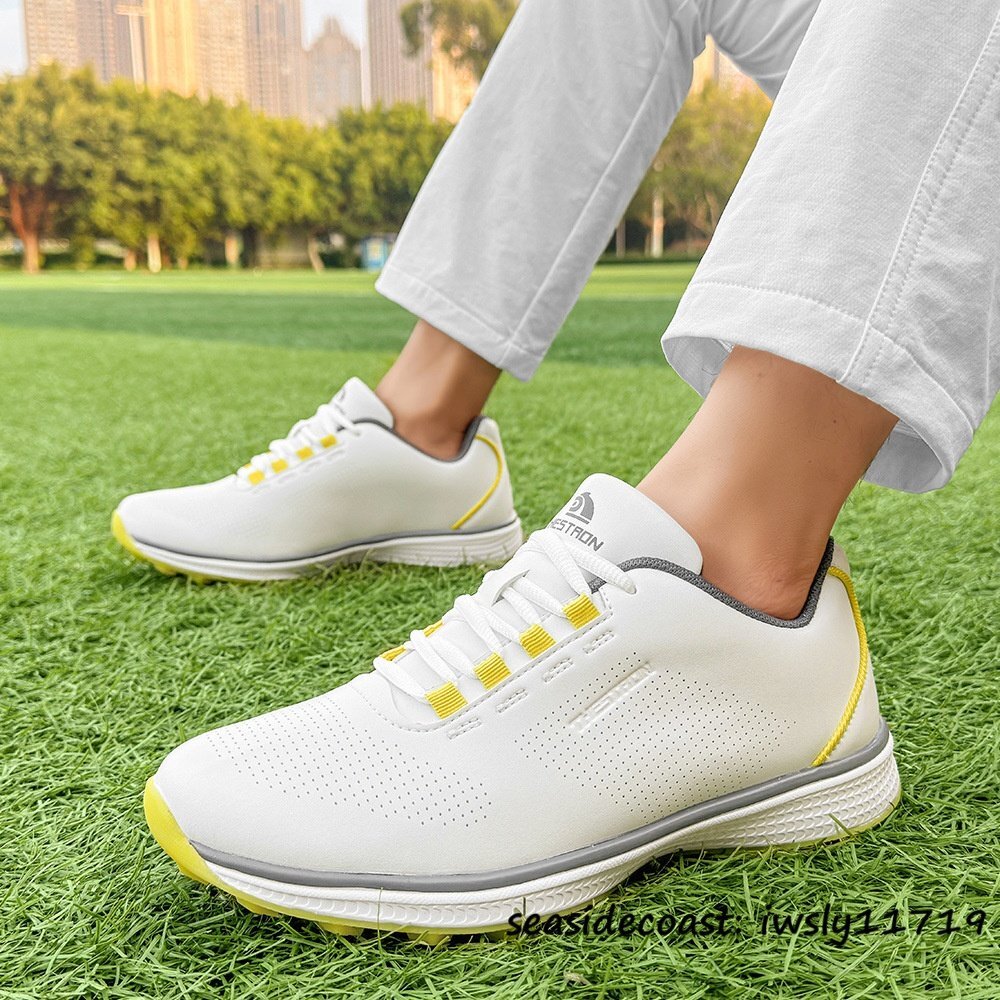 - 絶賛◆新品 ゴルフシューズ 通気性 スポーツシューズ メンズ 男女兼用 運動靴 耐久性 スニーカー フィット感 防滑 耐磨 白*黄 27.0cm
