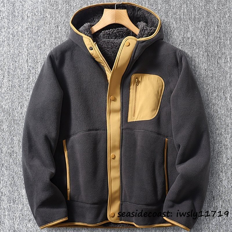 > 秋冬新品■裏起毛 ボアフリースジャケット メンズ スタンドカラー 配色 切替 フェイクボア ジャケット 厚手 防寒 バイカラー グレー 4XL
