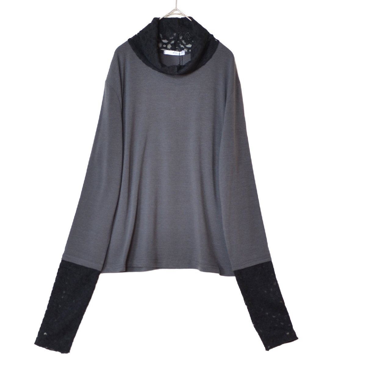 - 起毛レース切替プルオーバー レディース Mサイズ レース袖 ハイネック 長袖 トップス フェミニン 冬のレイヤード SILENT WORTH C-3203
