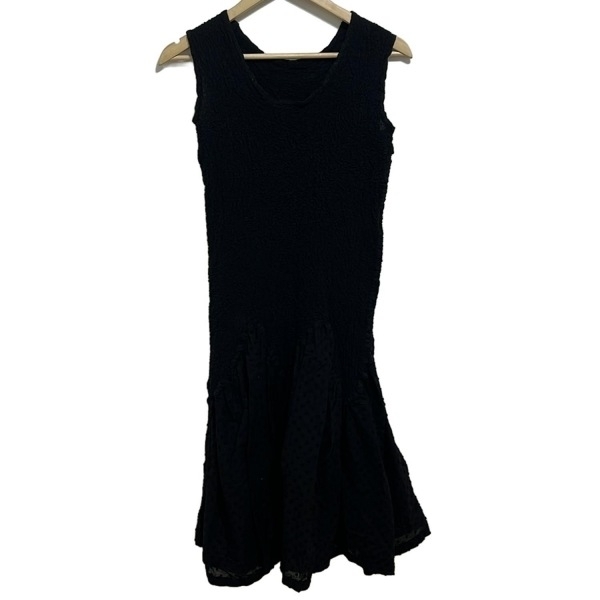 - ミー/イッセイミヤケ me ISSEY MIYAKE - 黒 レディース クルーネック/ノースリーブ/ロング/ドット柄/シースルー ワンピース