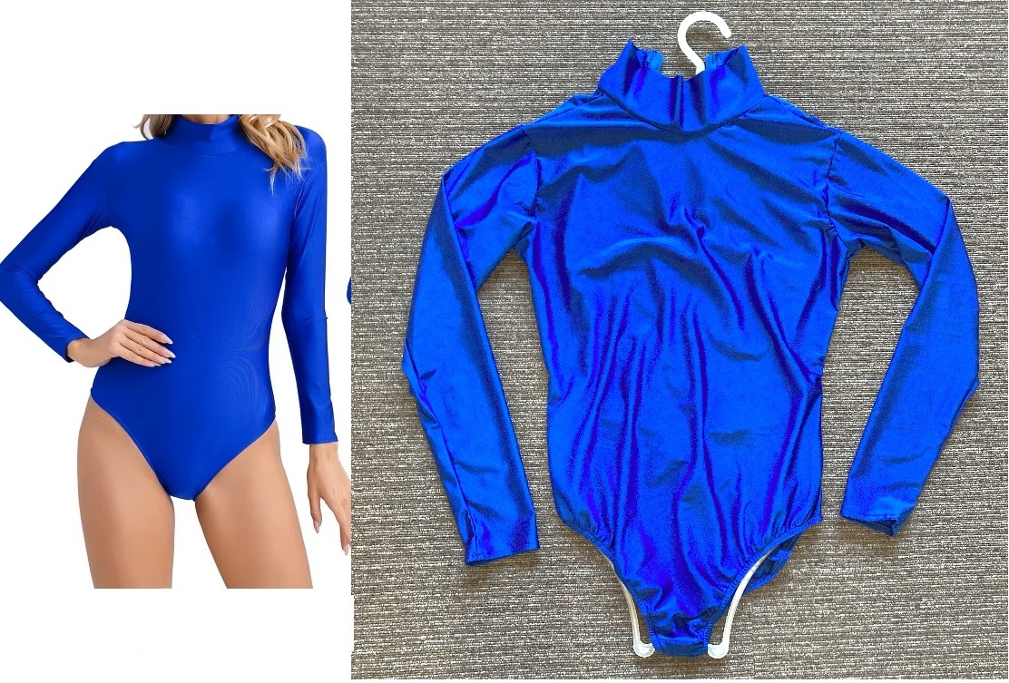 > Mサイズ ブルー IEFIEL社オーダー製品 ポリエステル光沢 ツルツル 艶々 ボディスーツ背中ファスナーストレッチ レオタード