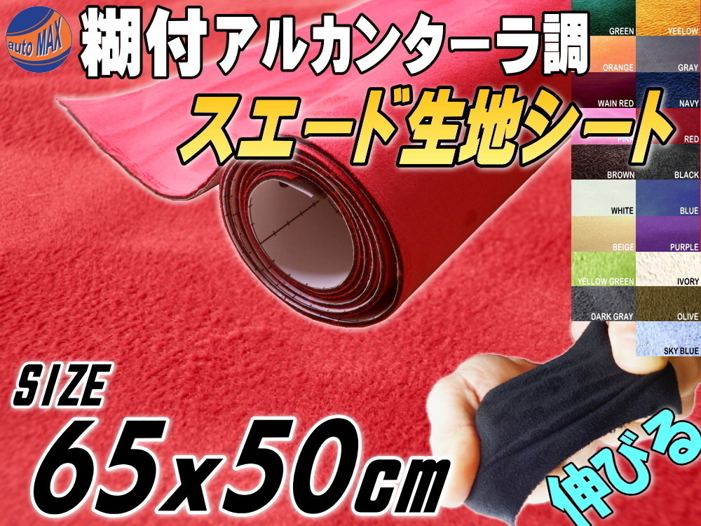 > スエード(小)赤 幅65cm×50cm伸びるアルカンターラ調スウェード生地シート裏面糊付きカッティング可 シート内装ステッカー車レッド 4
