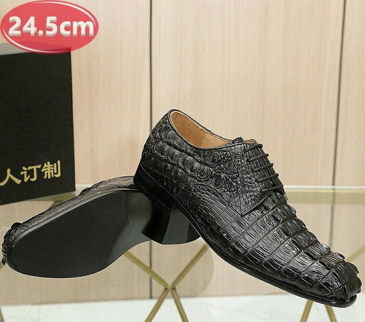 - クロコダイルレザー ビジネスシューズ 最高級 ワニ革 クロコダイル 靴 メンズシューズ 革靴 ブラック 24.5cm 【n782】