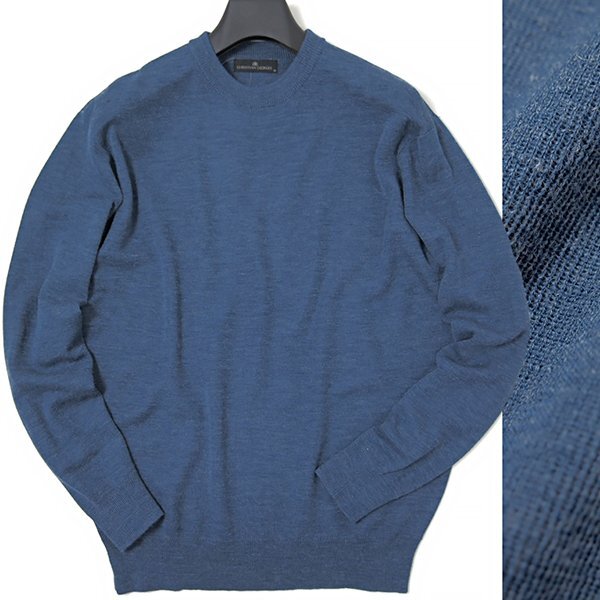 - 新品 クリスチャンジョルジュ 秋冬 ウール クルーネック ニット LL 青灰 【SSA12-13402_9_LL】 メンズ セーター ウォッシャブル 丸首