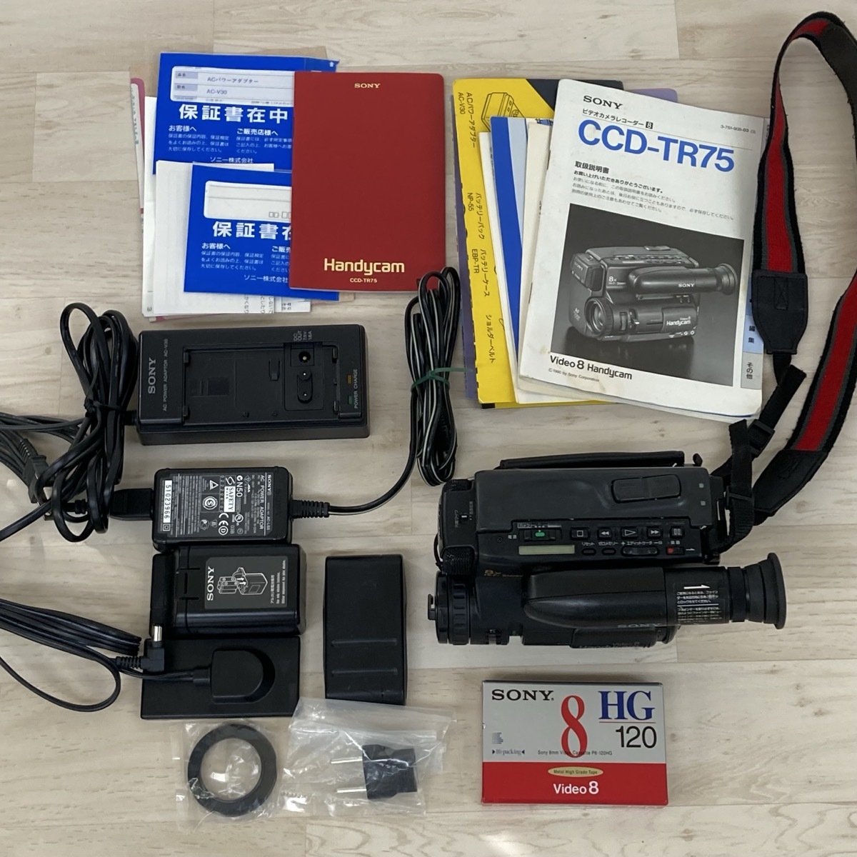 - ジャンク品 ソニーSONY HANDYCAM VIDEO8 CCD-TR75 8ミリビデオカメラ ハンディカム バッテリー ケーブル その他付属品[I0519]