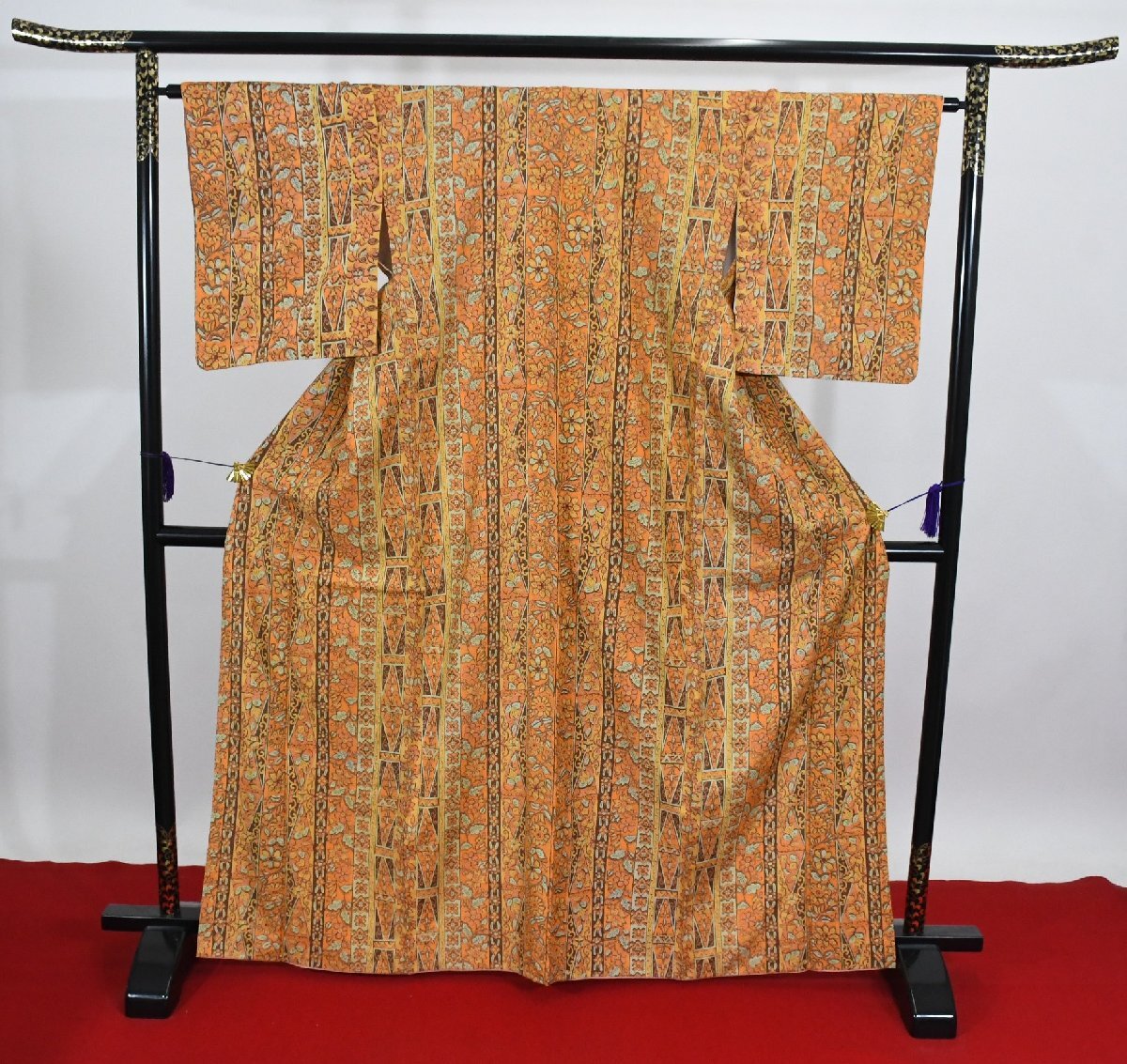 - 小紋 着物 袷 オリエンタル 和更紗 渡来文様 身丈159cm 裄丈65cm ★ kb-7454 桜庭呉服店