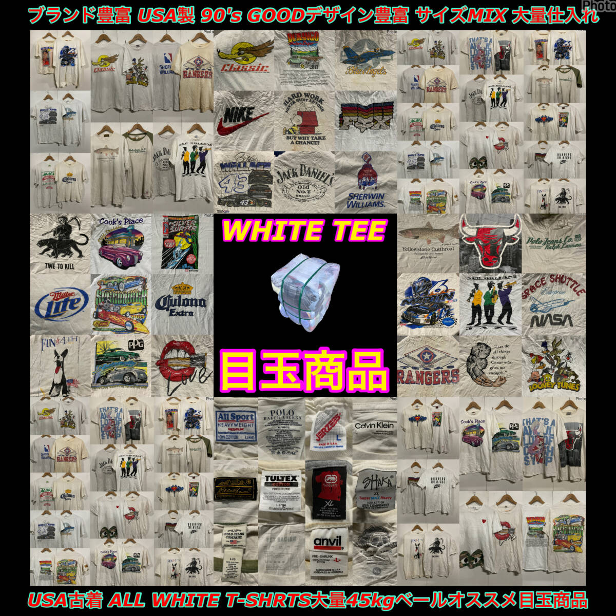 > 【T1731】★ブランド豊富★ アメリカ古着卸オススメALL WHITE T-SHRTS大量45kgベール大人気目玉商品 ブランド豊富 GOODデザイン豊富 仕入れ