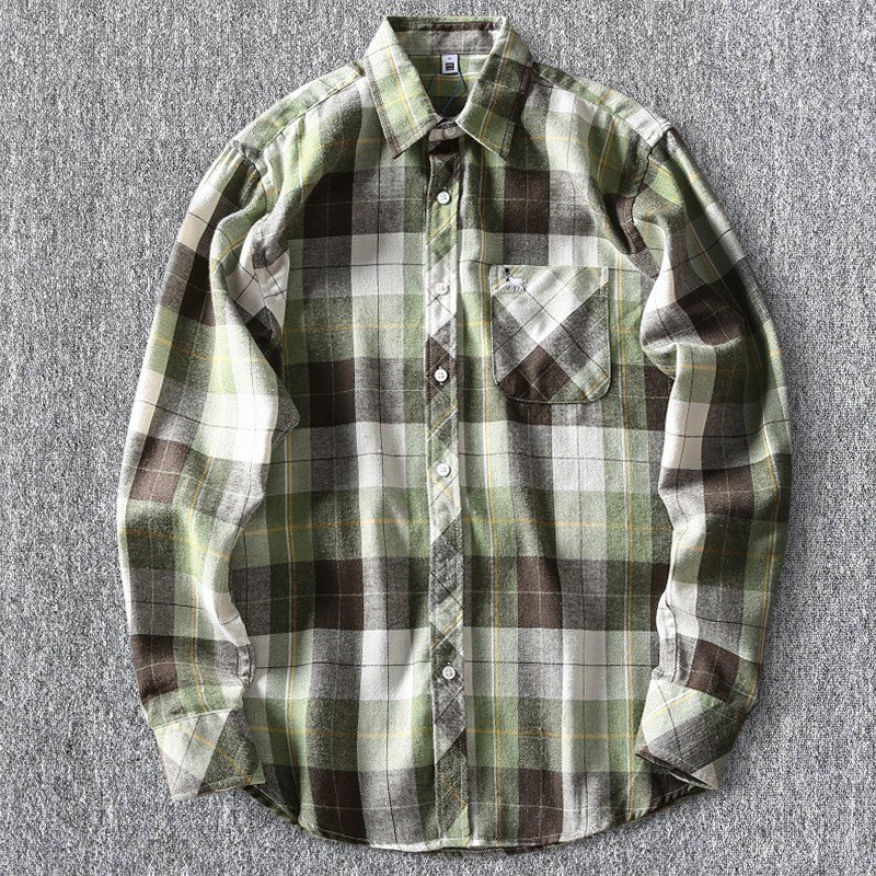 > 春の新作!国内未販売 DCKMANY 新品 メンズ長袖シャツ チェック柄 ウォッシュ加工 起毛 春秋 着心地が非常に快適 /緑色T4043-M