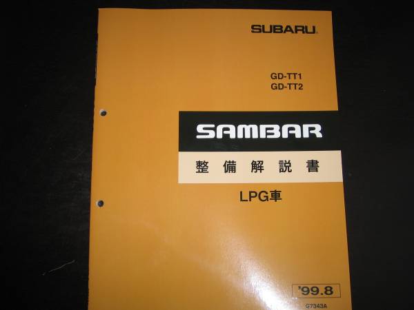1999年8月のサンバー(LPG車)の発売に際し既販車との相違点の整備要領を主体に解説している資料です。