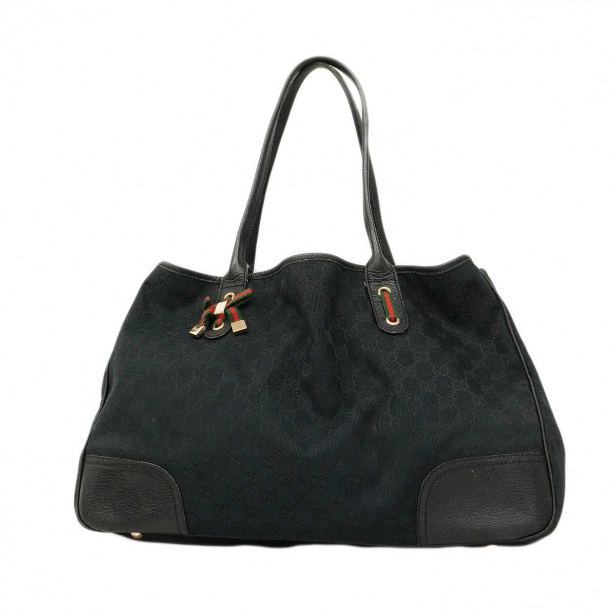 - 【5ob1310】グッチ トートバッグ GGキャンバス/シェリーライン プリンシー 161719 キャンバス ブラック ゴールド金具【中古】レディース