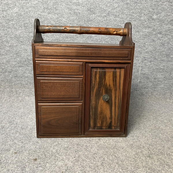 - 【政】34125 時代物 不精箱 木製 桑製 唐木 竹 黒柿 寛永通宝 摘み 茶道具 器局