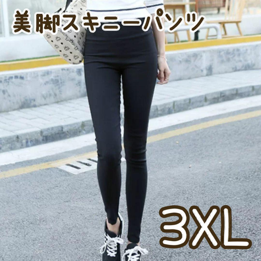 - 3XL ハイウエスト美脚パンツ ストレッチ 黒 スキニー パンツ 脚長 レギンス 通勤 カジュアル 着痩せ 体型カバー