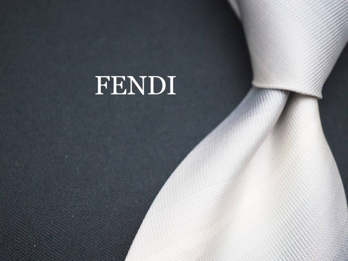 - 美品【FENDI フェンディ】 G1618 ホワイトグレー系 SILK ブランド ネクタイ 古着 良品 転売 仕入