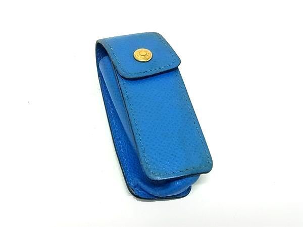 > 1円 HERMES エルメス レザー ゴールド金具 印鑑ケース リップケース ガムケース レディース メンズ ブルー系 BT0112