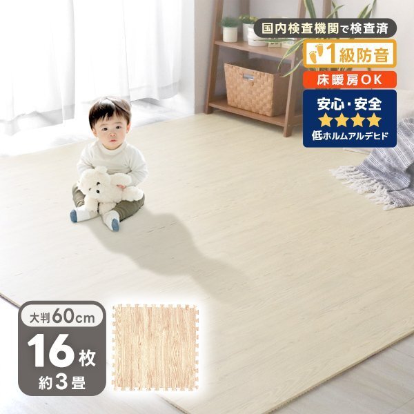 > ジョイントマット 木目調 16枚セット ナチュラル 大判 60cm 3畳 床暖房対応 防音 抗菌 防水 ノンホルマリン ベビーマット フロアマット
