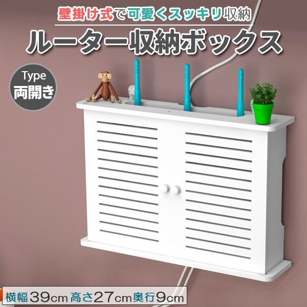- ルーター収納 タップ隠し 目隠し収納 薄型 壁掛け 両開き 配線 コード収納 電源タップ収納 コンパクト 安全対策 LAN 壁掛け式収納ボックス