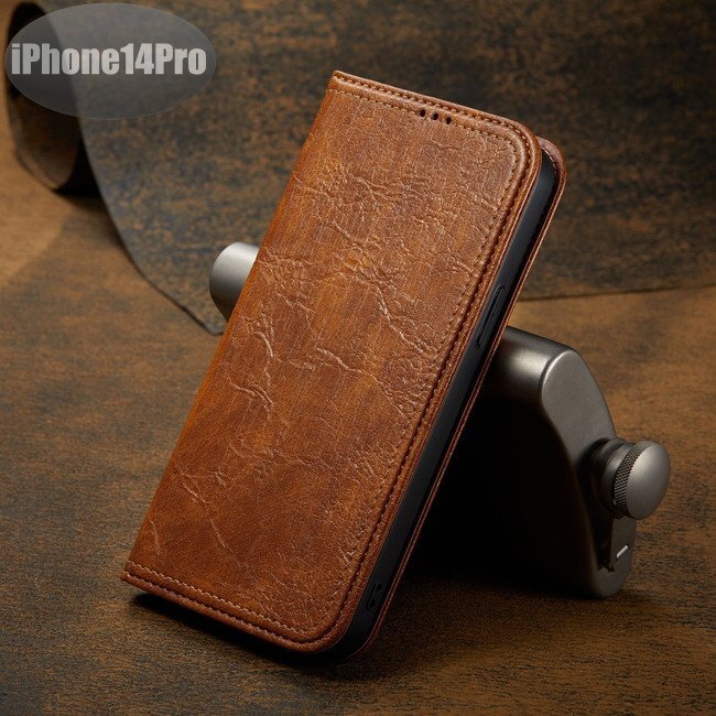 - iPhone14PRO ケース PUレザー おしゃれ スマホケース スマホカバー カーキ 耐衝撃 衝撃吸収【n279】
