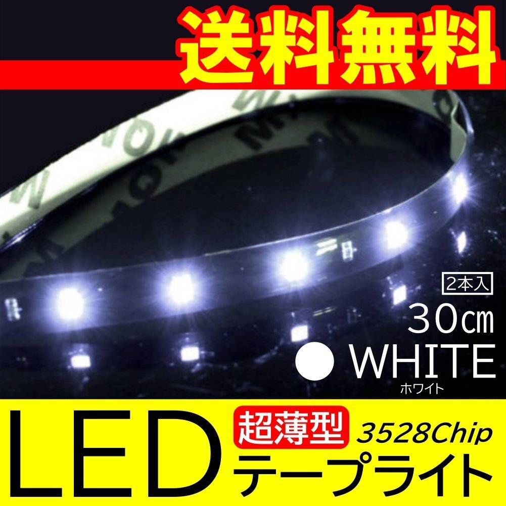 > ホワイト 高輝度 LED 3528チップ LEDテープライト 30cm 15発 15SMD 正面発光 ブラックベース 送料無料 2本