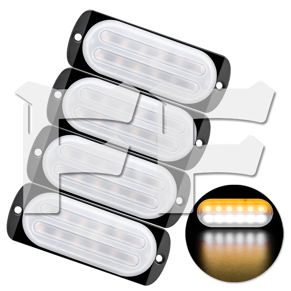 > イエロー/ホワイト 多モード 薄型 片側 LEDライト ハザード ストロボ フラッシュ パトロール 大型車 建設機械 トラック ボート 4個
