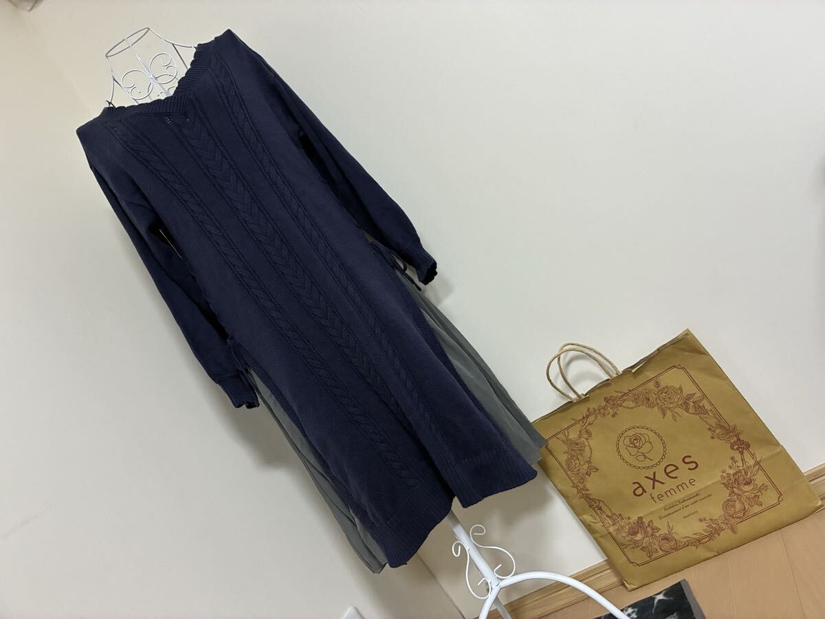 - アクシーズファム☆サイドプリーツニットワンピース☆used