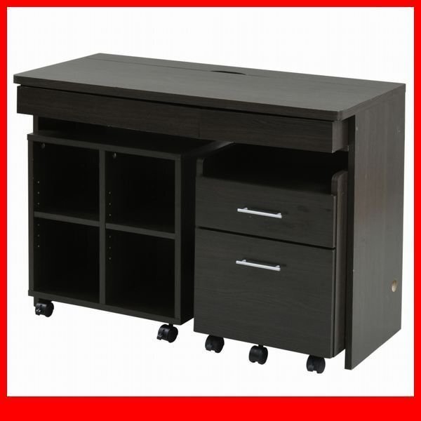 > デスク 机★テレワークに シンプルデスク チェスト ラック 3点セット/パソコンデスク 書斎机 オフィスで/ダークブラウン/a1