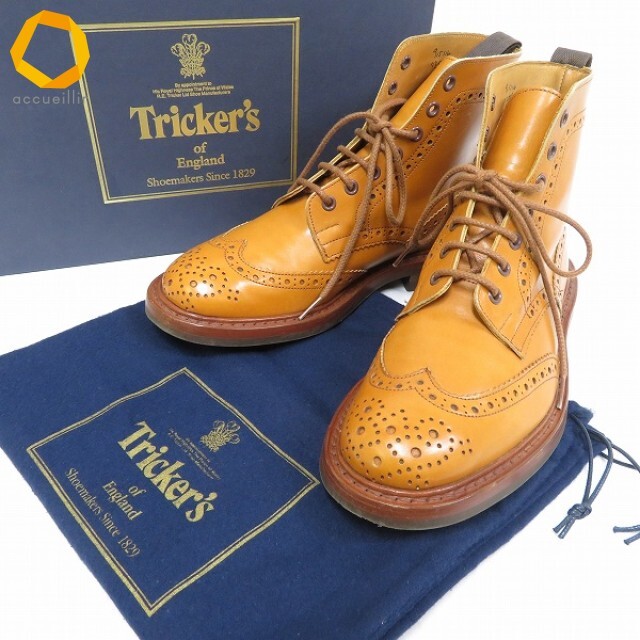 > #as トリッカーズ Tricker's カントリー ブーツ 7 茶系 72508 イングランド製 英国製 ウィングチップ 箱・袋付き メンズ [968264] k01