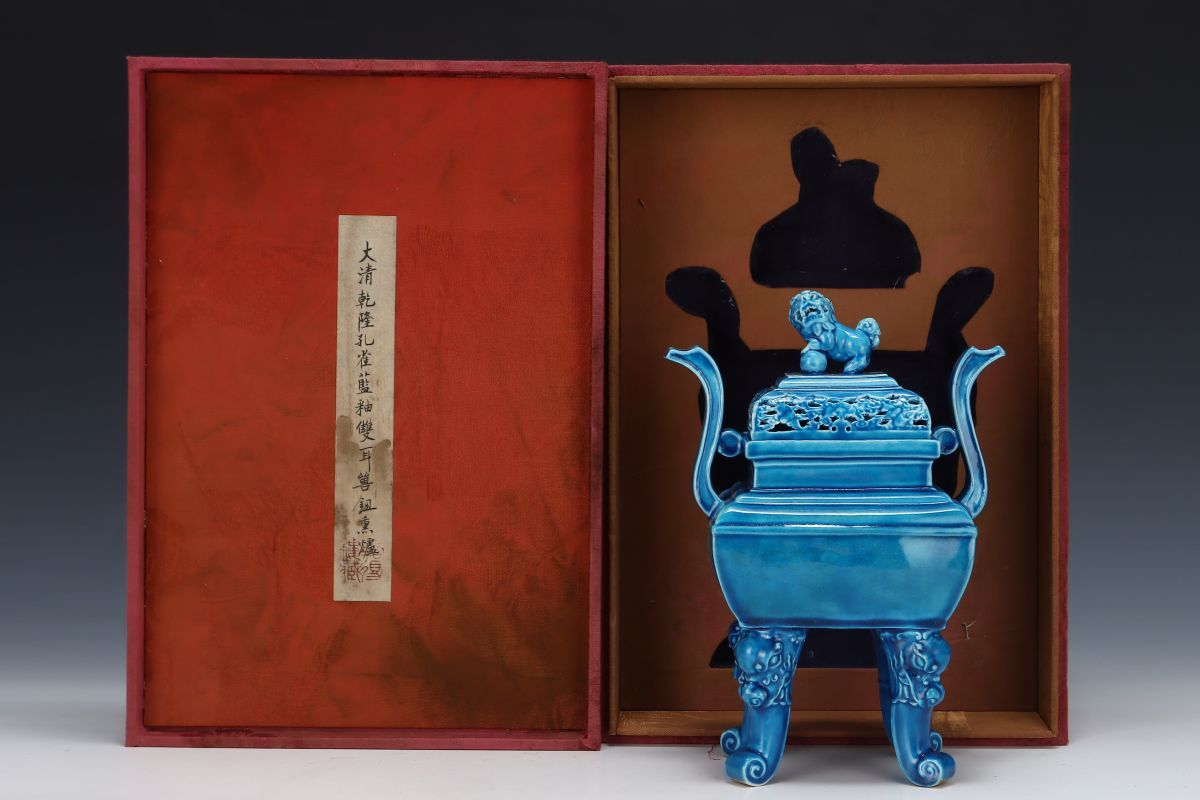 - 永し 清時代 大清乾隆年製 孔雀藍釉 雙耳獸鈕熏爐 古陶磁器 陶芸 皿 中国陶瓷器 唐瓷 置物擺件 古美術 古賞物 収集 旧家蔵出 中国唐物 A355