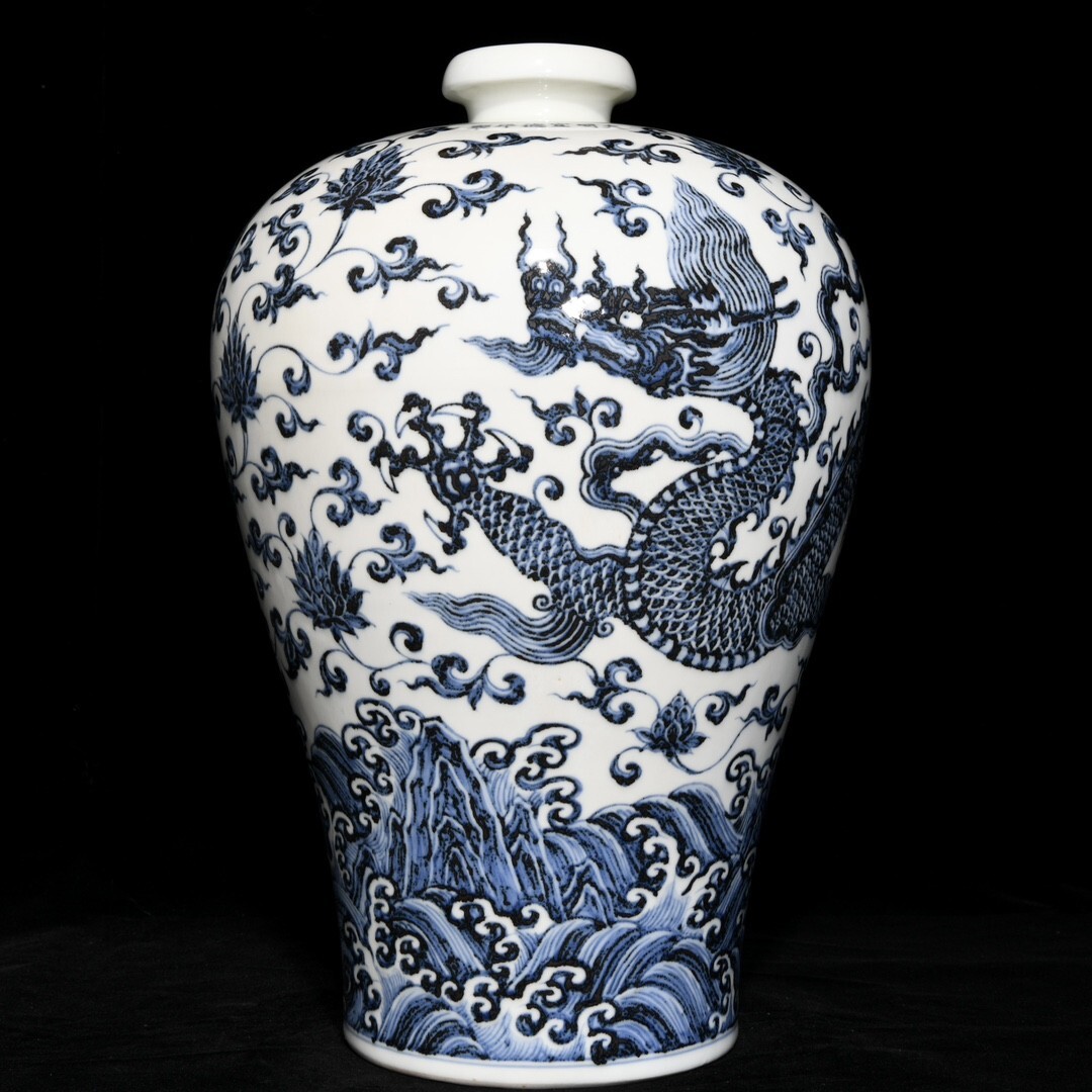 - 永し 明時代 大明宣德年製 青花龍紋瓶 古陶磁器 陶芸 皿 中国陶瓷器 唐瓷 置物擺件 古美術品 古賞物 収集 旧家蔵出 中国唐物 A12