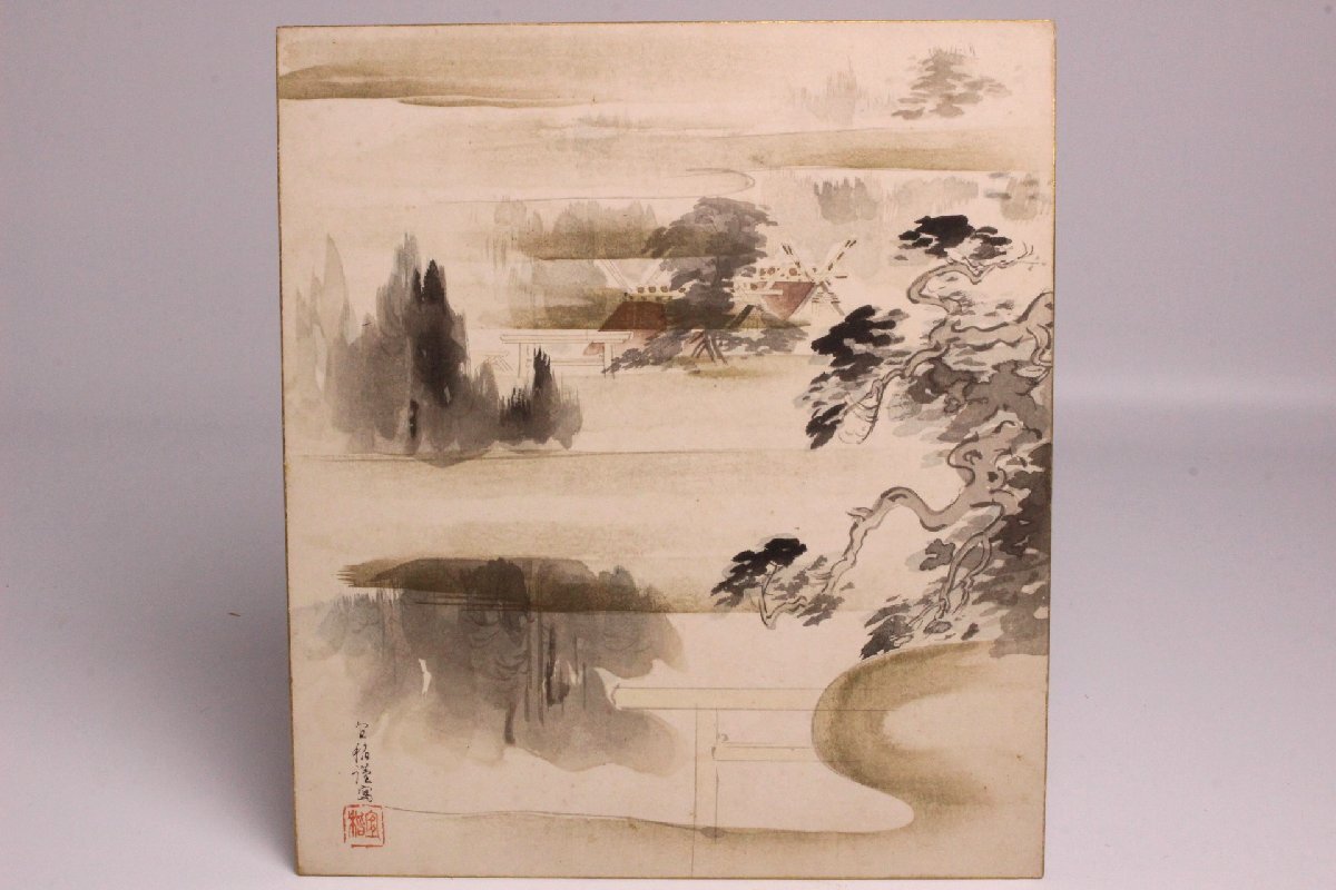森村宜稲 作 神宮大廟図 色紙 (伊勢神宮)