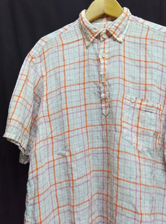 - サンシャインクラウド☆リネン コットン チェック プルオーバーシャツ 1 オレンジ系 sunshine+cloud grown in the sun ボタンダウン