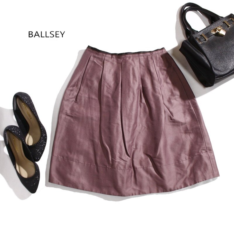 > 美品 ボールジー Ballsey トゥモローランド サテンフレアスカート ダスティピンク ひざ丈 Aライン サイズ34 オフィス 綺麗め 通勤 可愛い
