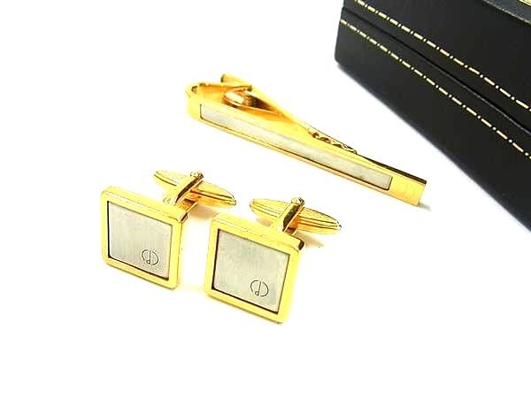 - dunhill ダンヒル カフス カフリンクス ネクタイピン タイピン ビジネス 紳士 メンズ 2点セット シルバー系×ゴールド系 DK7365