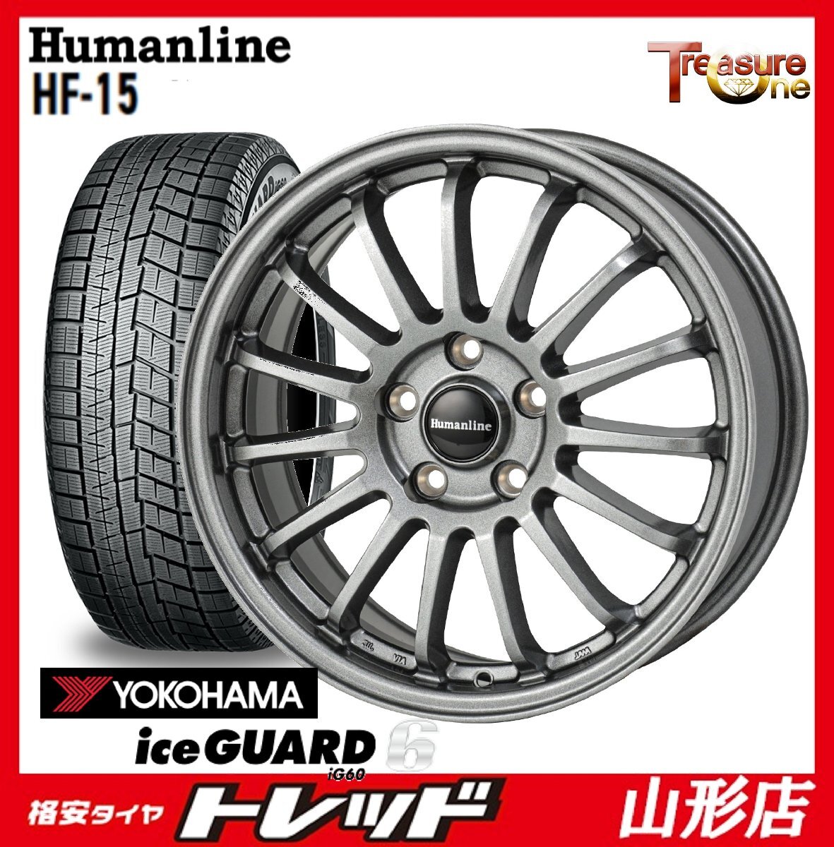 - 山形店 新品 冬タイヤホイール4本セット Humanline HF-15 16インチ 6.5J 5H114.3 +53 DG ヨコハマ アイスガード6 205/60R16 2024年製